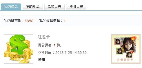 红包卡:兑换成功后,用户空间可直接使用 功能:随机获得购买价格的1%-150%的城市币!