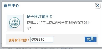 帖子限时置顶卡:兑换成功后,需要在帖子详细页面中使用,使用方法:点击帖子内容右下角处红色“道具”(帖子限时置顶卡)功能:帖子限时置顶24小时